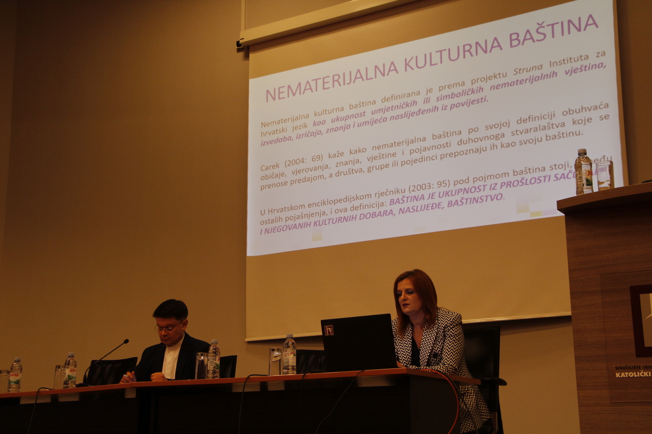Prof. dr. sc. Emina Berbić Kolar povezala je temu jezika, identiteta i odgoja, ukazujući na važnost očuvanja nematerijalne kulturne baštine kroz školstvo i svakodnevicu. Iz konkretnih primjera slavonskih govora, ali i kroz širi društveni angažman, pokazala je kako njegovanje materinskog jezika nije samo pitanje tradicije, nego i duboko obrazovno i odgojno pitanje, ključno za samosvijest novih generacija.
