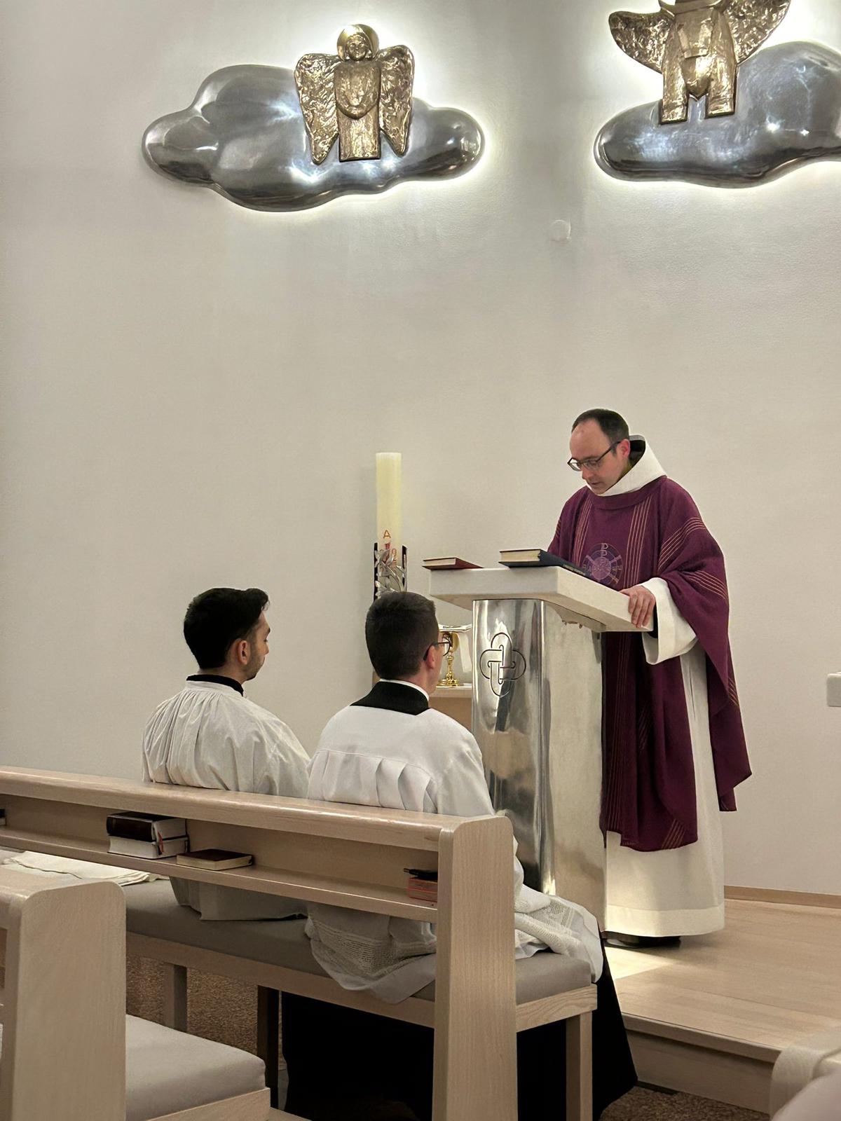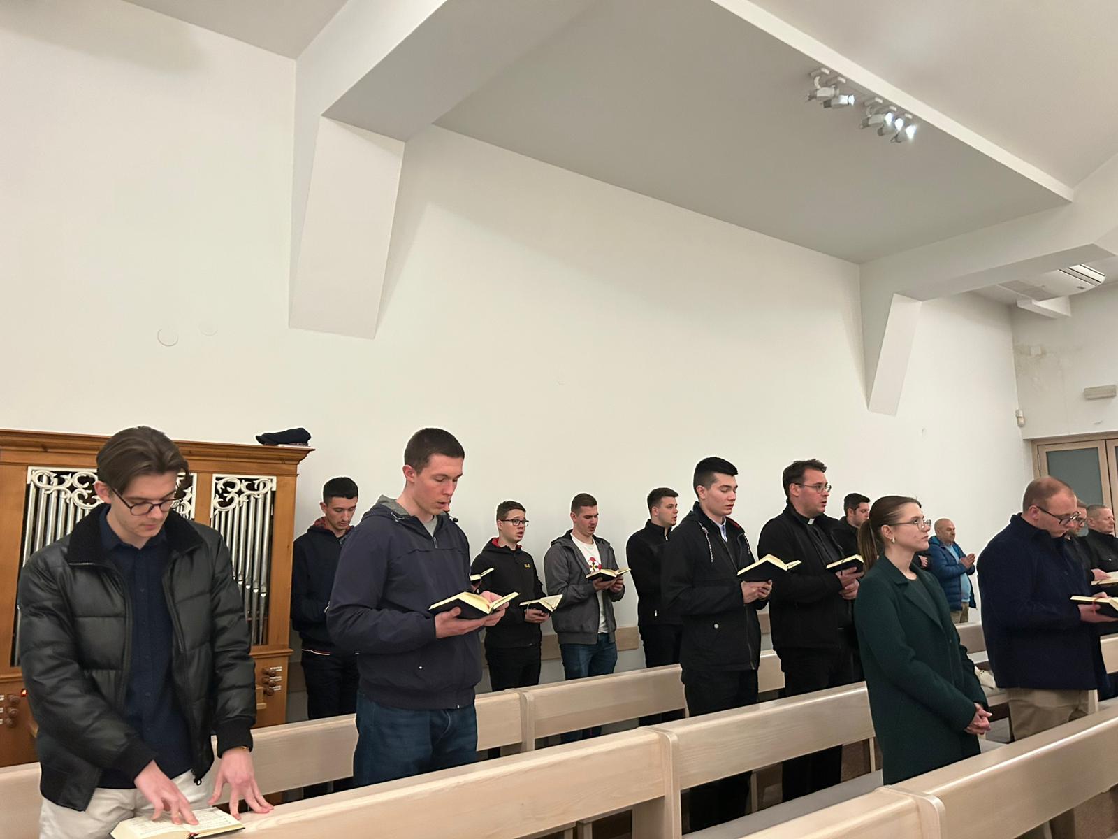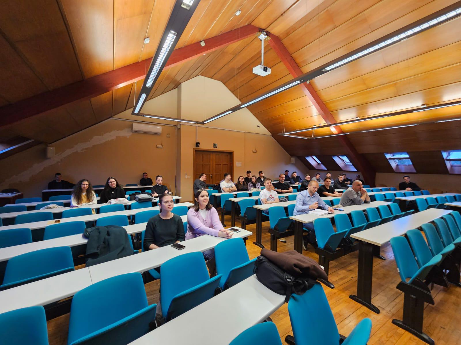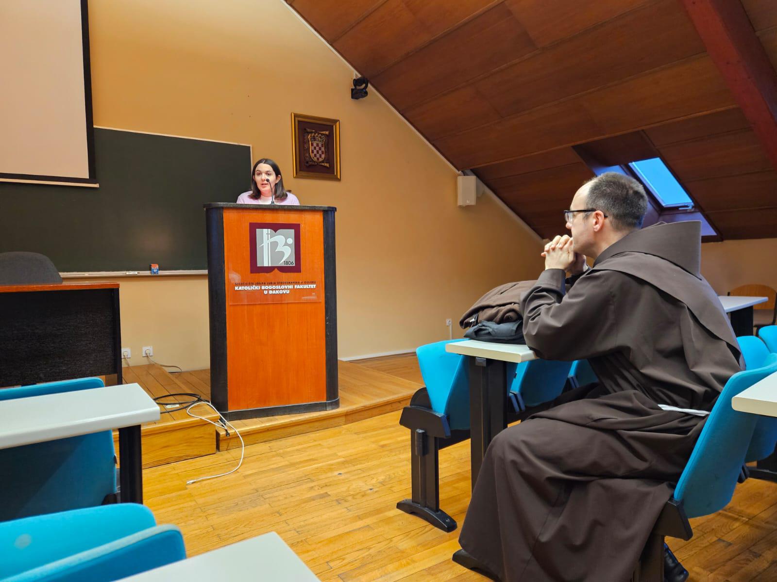 Dana 12. ožujka 2026. smo ugostili fra Ivana Crnković iz Slavonskoga Broda. Najprije je održao predavanje o Franjinom shvaćanju euharistije ističući divljenje kao bitnu komponentu koja uvijek budi ljubav. Predsjednica studentskog zbora, Jelena Živković je zaključila predavanje zahvalom potičući studenete da na primjeru sv. Franje i oni budu nositelji Božjeg zagrljaja.