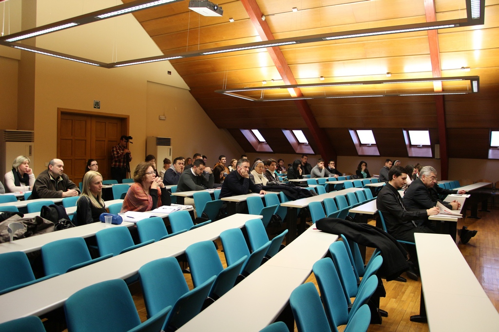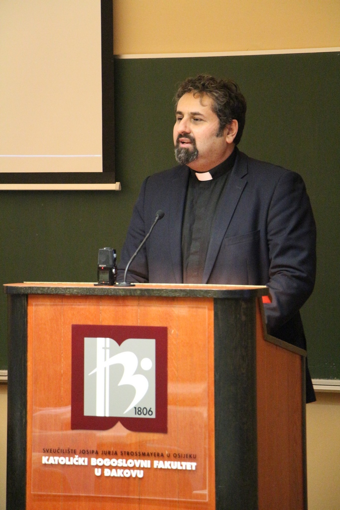Ljudska svetost kao objava svetosti Božje bila je tema predavanja prof. dr. Zoran Krstića. U središtu izlaganja bio je pojam svetosti, što ne podrazumijeva neko ljudsko dostignuće, nego isključivo dar Gospodnji. Unutar Crkve prepoznajemo svećenike, laike, biskupe… čime se želi naglasiti raznolikost, ali ne i razlika među njima. Bez svih tih službi Crkva ne bi bila cjelovita. Raznolikost je prisutna isključivo zbog organske strukture Crkve. Svatko od njih sabran je u Gospodinu, tako da svetost predstavlja događaj zajednice, a ne pojedinca. U drugom dijelu predavanja prof. Krstić aktualizirao je tematiku vjeroispovijesti i religioznosti. Deklariranih vjernika ima mnogo, no suvremeni mentalitet religioznosti kao da je prekinuo veze s prvom Crkvom. Traži se Bog za sebe, razvija puki individualizam i privatizacija religije. Uzrok svemu je olako shvaćanje svetosti koje dovodi do ideje da Bog posvećuje samo izabrane, a pojam Svetitelja postaje relativan.