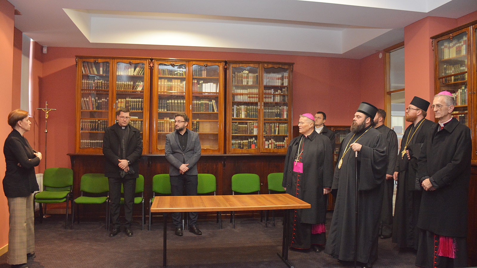 Tijekom posjeta Fakultetu, episkopa Heruvima i njegovu pratnju u Vijećnici je primio prodekan za znanost i međufakultetsku suradnju prof. dr. sc. Šimo Šokčević, koji ih je ukratko upoznao s radom KBF-a, njegovim studentskim kampusom te ključnim objektima unutar kompleksa. Gosti su razgledali Središnju nadbiskupijsku i fakultetsku knjižnicu, gdje ih je dočekala knjižničarka Ankica Landeka i predstavila Spomen-knjižnicu biskupa Strossmayera i ostalo knjižnično blago.
