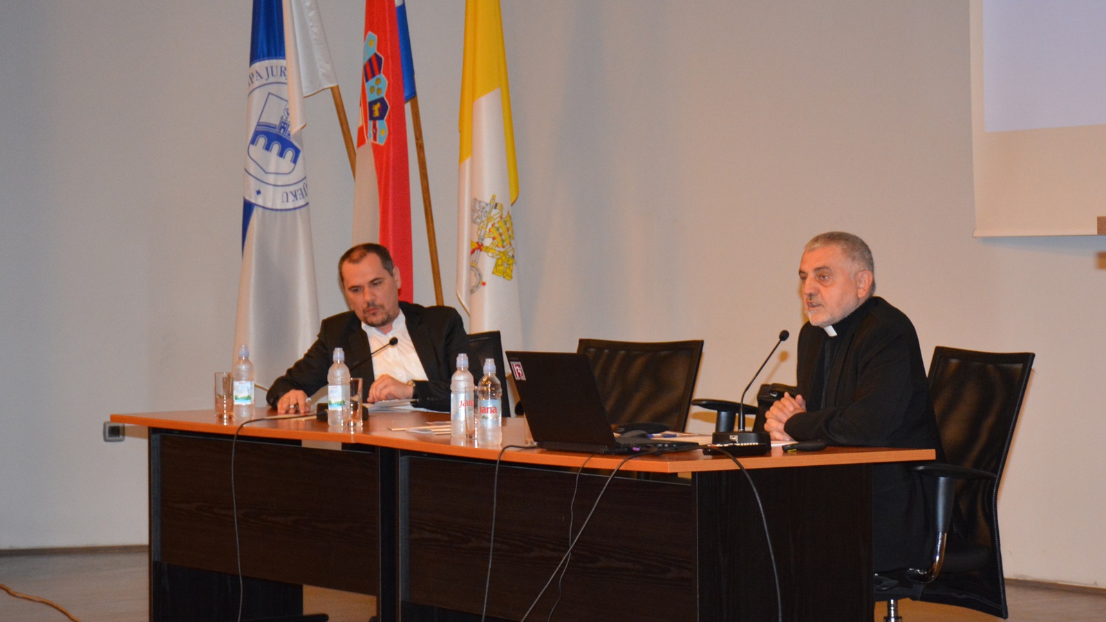 „Prožimanja državno-pravne i crkvene jurisdikcije u Srijemu od polovice 19. stoljeća do danas i poimanje jurisdikcije u SPC-u: neka otvorena pitanja“ tema je o kojoj je izlagao dr. sc. Mario Jareb, znanstveni savjetnik. Izlaganje je temeljio na raščlambi državno-pravnog položaja Srijema (Srijemske županije) u sklopu nekadašnje Trojedne Kraljevine Dalmacije, Hrvatske i Slavonije od druge polovice 19. stoljeća do današnjeg položaja istočnoga Srijema kao dijela Republike Srbije i suodnosa toga položaja sa ustrojem Katoličke Crkve. Pritom su u obzir uzeti podatci o etničkoj i jezičnoj pripadnosti vjerničkog puka na prostoru današnje Srijemske biskupije kao temelja tradicionalne povezanosti s ostalim područjima Srijema i Slavonije kao dijelova današnje RH. U tom smislu izlagač je razmotrio povezanost s današnjom Đakovačko-osječkom nadbiskupijom kao crkvenom pokrajinom, naglasivši kako je Nadbiskupija tradicionalno i logično središte katolika današnje Srijemske biskupije. S obzirom na današnju državno-pravnu podijeljenost Srijema na dvije države, posebna pozornost u izlaganju posvećena problematici uređenja područja biskupija koje su nekada činile istu državno-pravnu cjelinu, no unatoč trenutnim državnim granicama su po tradicijama i po sastavu vjerničkoga puka upućene na blisku povezanost s nekadašnjim biskupijskim središtima. S obzirom na doticaj Katoličke crkve u Srijemu sa Srpskom pravoslavnom crkvom potrebno je raščlaniti problematiku jurisdikcije te Crkve, posebice u odnosu na njezinu teritorijalnu podjelu eparhija i mitropolija na hrvatskom i srpskom državnom i etničkom području.