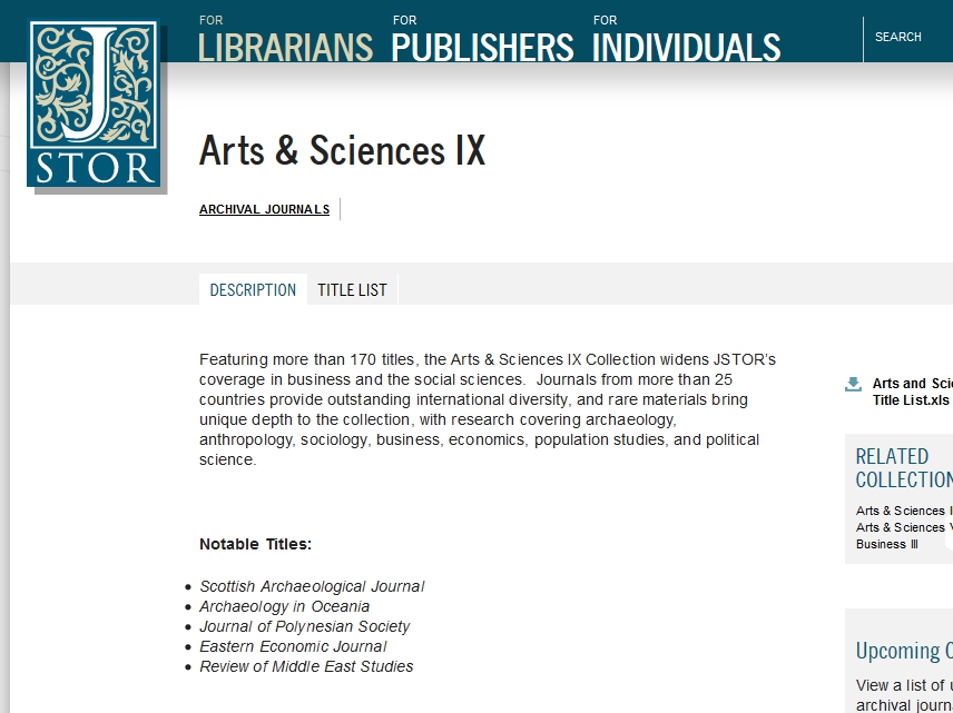 Otvoren pristup na JSTOR zbirke Arts & Sciences VIII i IX