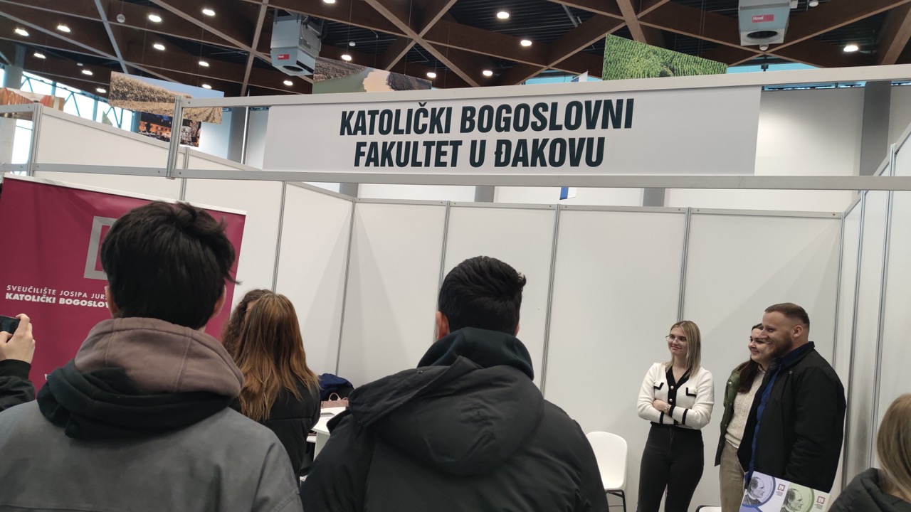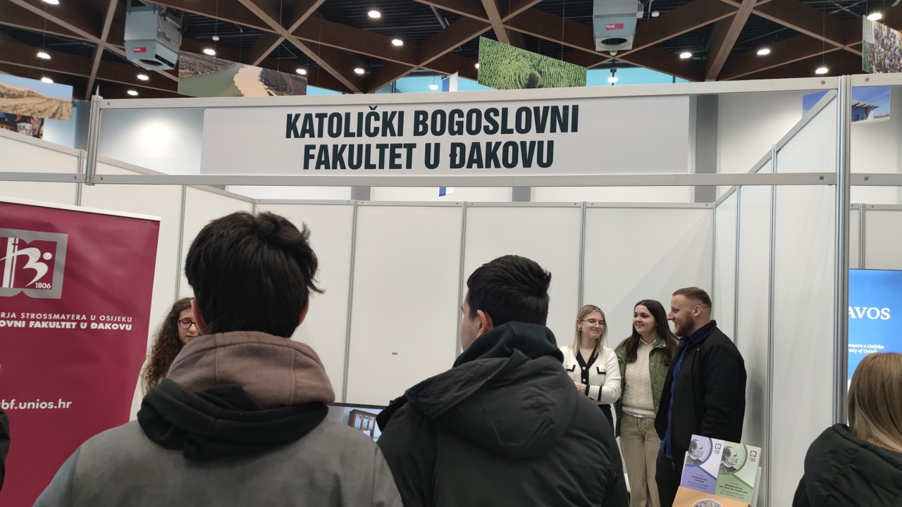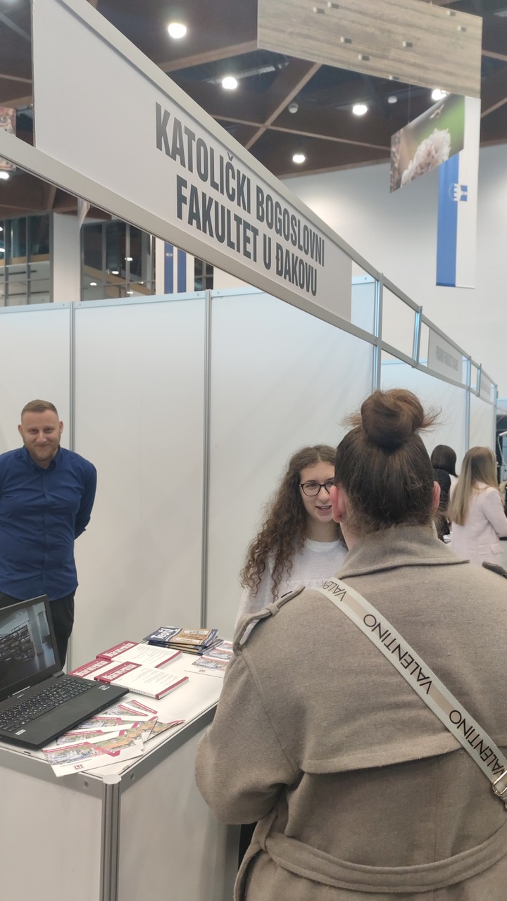 Osijek, 24. i 25. siječnja 2025. – Katolički bogoslovni fakultet u Đakovu predstavio se na ovogodišnjoj Smotri Sveučilišta Josipa Jurja Strossmayera u Osijeku. Smotra je okupila brojne visokoškolske ustanove, pružajući srednjoškolcima i budućim studentima priliku da se iz prve ruke upoznaju s akademskim programima i mogućnostima studiranja. KBF su predstavljali studenti i profesori, uključujući Petru Plantosar, dr. sc. Ivana Zubca i prodekana za nastavu i studente, izv. prof. dr. sc. Borisa Vulića. Kroz neposredne razgovore s posjetiteljima i prezentaciju, tim KBF-a je na najbolji način predstavio studijske programe, znanstveni rad i duhovni razvoj koji su temelj obrazovanja na fakultetu. Posebna pozornost posvećena je mogućnostima koje fakultet nudi svojim studentima. Smotra je bila prilika za povezivanje s mladima koji razmišljaju o teološkom obrazovanju, ali i za predstavljanje fakulteta kao važnog dijela akademske zajednice Sveučilišta. Sudjelovanje na Smotri Sveučilišta još jednom je potvrdilo važnost teološke misli i obrazovanja u suvremenom društvu, a KBF u Đakovu s ponosom je bio dio ovog značajnog događaja.