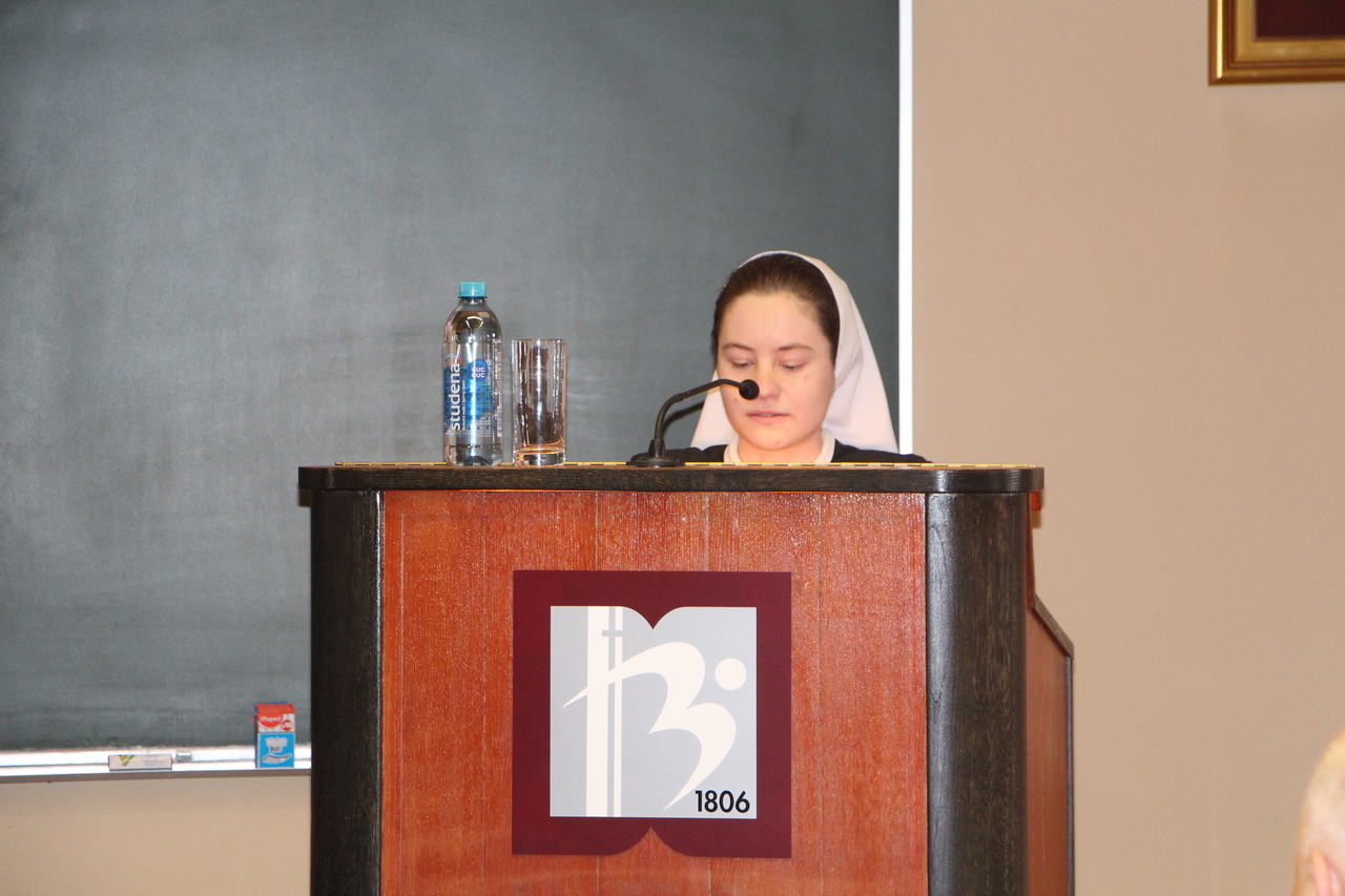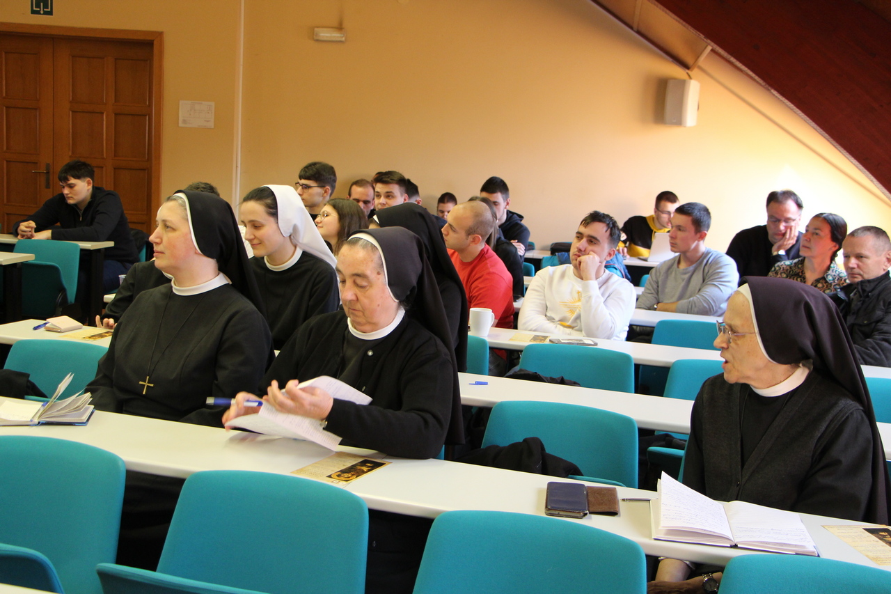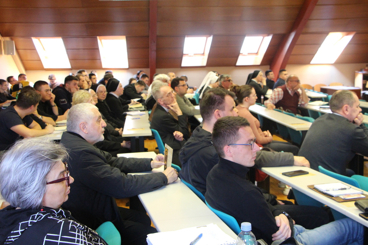 Nakon uvodne riječi uslijedilo je prvo predavanje koje je održao prof. dr. sc. fra Ivan Šarčević, član Franjevačke provincije Bosne Srebrene. Fra Ivan je dugi niz godina predavao pastoralnu teologiju i katehetiku na Franjevačkoj teologiji u Sarajevu, a danas djeluje u franjevačkom samostanu u Beogradu. U svom znanstvenom i pastoralnom radu posebno se bavi pitanjima religijskog jezika, odnosa vjere i sekularnog društva, političke teologije, ekumenizma te međureligijskog dijaloga.