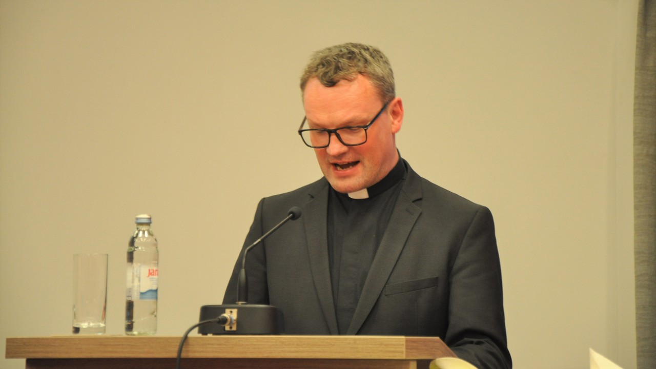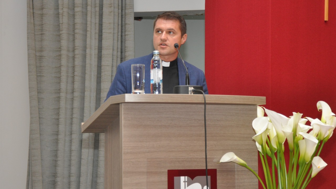 Prof. dr. sc. Ivica Raguž, vršitelj dužnosti dekana na Katoličkom bogoslovnom fakultetu u Đakovu te profesor dogmatske teologije izložio je „Teološki osvrt na Glasnik/Vjesnik od početka do Drugog svjetskog rata“. Prof. Raguž govorio je o tome kako je teologija kao takva i teorijska i praktična znanost jer se bavi spoznajom Božje objave, ali i jer promatra kako da Božja objava postane čovjekova svakodnevica. Upravo Vjesnik, istaknuo je, stavlja naglasak na taj praktični aspekt jer nije dovoljno istinu samo znati, nego ju je potrebno i prakticirati. Nadalje, dekan je istaknuo kako je sam Vjesnik nastao iz potrebe da se suprotstavi opasnosti prosvjetiteljstva i udaljavanju od teologije. Biskup Strossmayer u Vjesniku je često podučavao, ali i prekoravao svoje svećenike zbog tema od kojih su neke i danas aktualne. Smatrao je kako svećenici trebaju prisiliti svoje protivnike da ih vole, ali ne mačem, nego krjeposnim životom. U tome se može vidjeti, istaknuo je prof. Raguž, Strossmayerova veličina.
