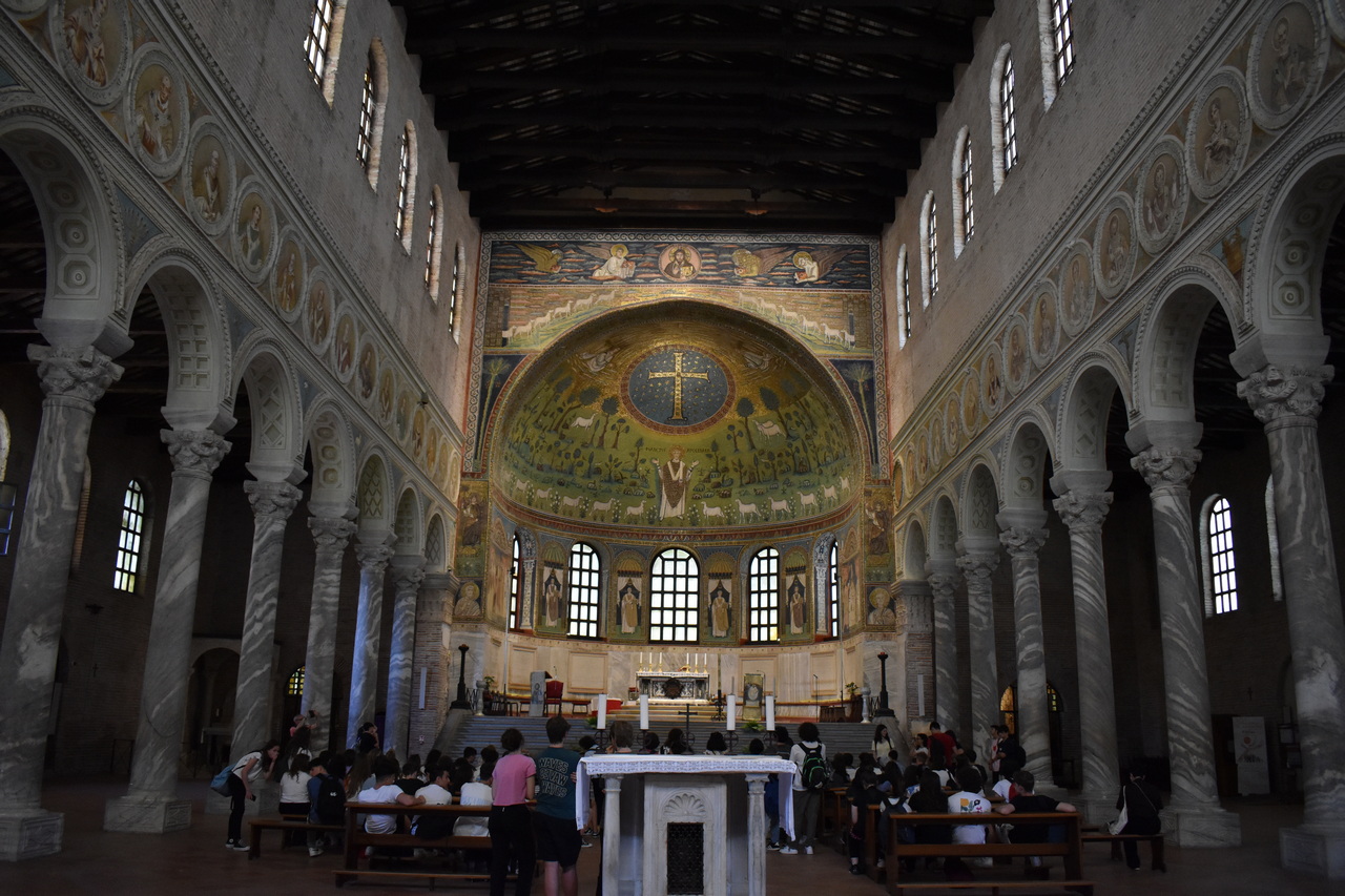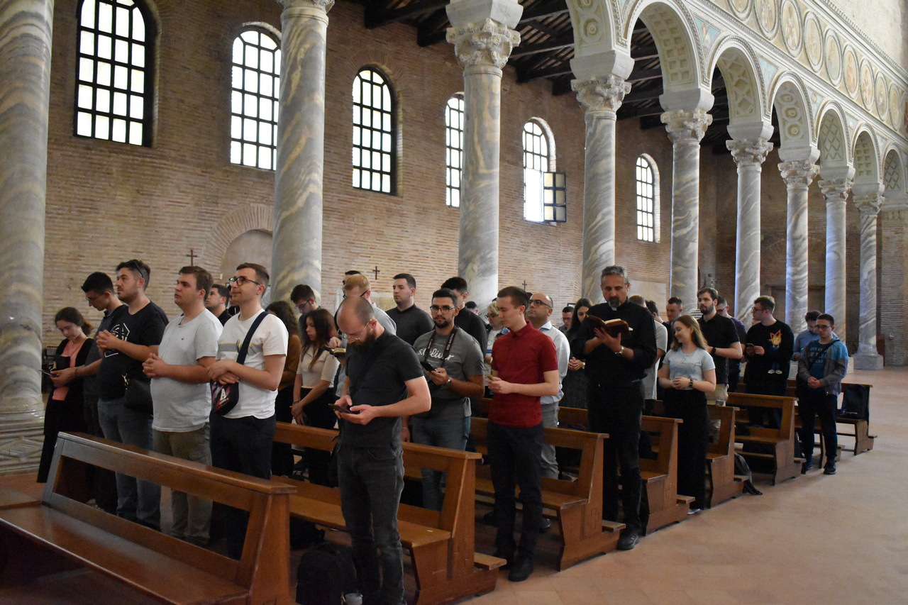 Program putovanja započeo je u ranim jutarnjim satima svetom misom u fakultetskoj kapelici Marije Majke Crkve koju je predvodio izv. prof. dr. sc. Davor Vuković, v. d. prodekana za financije u koncelebraciji sa prof. dr. sc. Ivicom Ragužem, v. d. dekana Fakulteta, izv. prof. dr. sc. Borisom Vulićem, v. d. prodekana za studente i mr. sc. Stjepanom Matezovićem, duhovnikom Bogoslovnog sjemeništa i profesorom duhovnosti na Fakultetu. Profesor Vuković je svoju homiliju započeo molitvom Thomasa Mertona: „Gospodine, Bože moj, ne znam kamo idem. Ne vidim put ispred sebe i ne mogu sa sigurnošću znati gdje će taj put završiti. Ne poznajem istinski ni sebe i to što mislim da slijedim tvoju volju ne znači da je uistinu tako. Ali vjerujem da ti je ugodna i sama želja da ti se ugodi. I nadam se da imam tu želju u svemu što radim.“ Upravo su te riječi trebale biti poticaj svima nama na ovome putovanju na kojemu nismo znali što će nas ondje sve zadesiti, da se potpuno prepustimo Bogu i njegovome vodstvu. Nakon svete mise, krenuli smo na put. U poslijepodnevnim satima stigli smo do Ravenne gdje smo posjetili baziliku sv. Apolinara u Classi, blizu Ravenne. Dekan je u tumačenju bazilike osobito istaknuo misao sv. Petra Krizologa koji je u jednom propovijedi u čast sv. Apolinara istaknuo da je sv. Apolinar „danomice umirao sebi, ne samo jednom kao mučenik“ i da je „promatrao nebo i upravo zato prezirao i tijelo i zemlju“ (coelum suscipiens carnem despiciebat et terram). Kapelica Fakulteta osobito je povezana s bazilikom sv. Apolinara, jer sv. Apolinar na glavnom mozaiku nosi misnicu s 144 pčelica, prema čijem uzorku su također načinjene i dvije misnice u Fakultetskoj kapelici. U bazilici smo izmolili srednji čas. U večernjim satima stigli smo u Asiz gdje smo nakon večere imali slobodno vrijeme za samostalno razgledavanje grada.