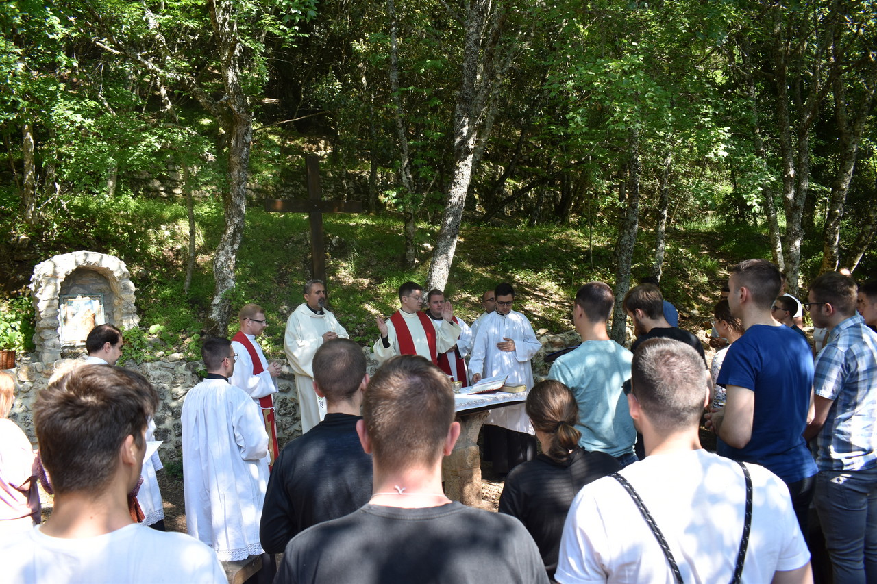 Posljednji dan započeli smo sv. misom u Porcijunkuli koju je predvodio mr. sc. Stjepan Matezović. Naglasio je kako smo ovo hodočašće započeli u kapelici Marije Majke Crkve, a završavamo ga svetom misom na blagdan Marije Majke Crkve. Naveo je kako se ovih dana stalno ponavljala misao „predati se Bogu“, ali i „željeti živjeti po Evanđelju“. Živjeti po evanđelju znači živjeti tri evanđeoska savjeta: poslušnosti, čistoće i siromaštva. U prvome čitanju imamo prve ljude, Evu koja je majka svima živima. Događa se drama nemogućnosti življenja po evanđeoskim savjetima, događa se tragedija života prvoga čovjeka, a ona se očituje u zatvorenosti za Božje savjete, za Božje zapovijedi. Neposlušnost je otvorila vrata spoznaji nečistoće, srama pred tijelom i neplodno siromaštvo. Duhovnik je nadalje naglasio kako smo ovih dana susreli one svece koji nam mogu biti autocesta za nebo. Oni svojim životom upućuju na znakove, sredstva koja nam je Bog sam dao, a koja nam omogućuju život na Nebu. Sv. Franjo pokazuje nam kako je moguće hrabro reformirati i popraviti Crkvu uvijek u poslušnosti. Istinske poslušnosti nema bez odanosti i predanja autoritetu. Čistoću je živio trajnom askezom tijela kako bi duh mogao rasti. Umirao je sebi kako bi umro grijehu i imao čist pogled prema sebi, drugima i Bogu. Živio je i siromaštvo, razdavao je sebe samoga, a od njegova siromaštva svi mi danas živimo. Svi mi baštinimo njegov život siromaštva. Nakon govora o svetome Franji, duhovnik se osvrnuo i na današnji blagdan Blažene Djevice Marije Majke Crkve. Ona je Žena nad svim ženama, Nova Eva, Majka, Kraljica. Bila je dostojna donijeti nam Boga, a pod križem postati nam svima Majka. Tada smo i mi dobili poslanje „evo ti Majke“ da ju poput Ivana primimo u dom da nam bude Majka koja će nas voditi da živimo po evanđeoskim savjetima. Duhovnik je homiliju zaključio pozivom da budemo hrabri biti drugačiji, kako je to i fra Antonio često isticao u svojim meditacijama u Asizu. Nakon sv. mise krenuli smo natrag za Đakovo, pjevajući i moleći putem.