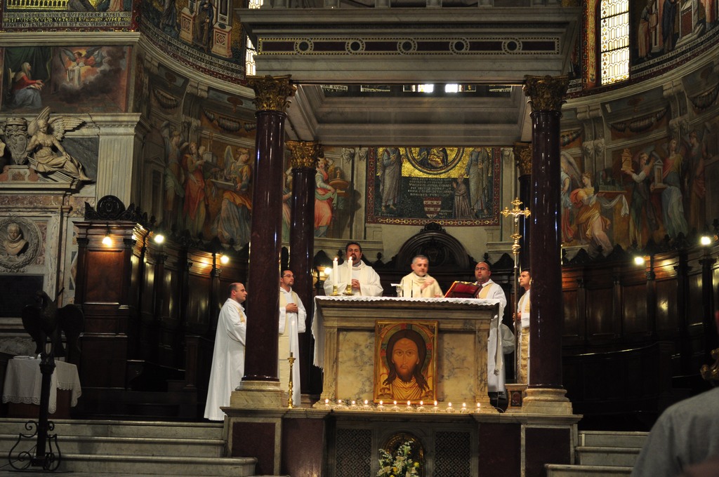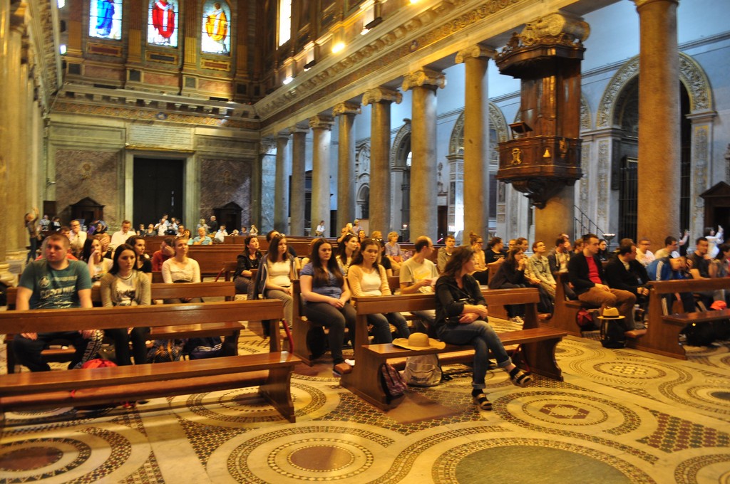 14. travnja započeo je teološki hod po Rimu sa sljedećim crkvama i teološkim naglascima: Chiesa Nuova (Filip Neri), Al Gesù (Ignacije Lojolski), sv. Andrija della Valle (Teatinci), crkva sv. Augustina (sv. Monika) i druge crkve. Prvi dan teološkoga hoda završen je zajedničkom misom koju je predvodio prodekan Grgo Grbešić u crkvi Santa Maria in Trastevere. Već prvoga dana studenti su mogli doživjeti Rim kao «locus theologicus», kao mjesto na kojemu su teološki mislili i živjeli toliki svetci i teolozi. Vodiči toga dana bili su vlč. Tomislav Lasić, student na poslijediplomskom studiju  liturgike i vlč. Ivan Benaković, student na poslijediplomskom studiju biblikuma.