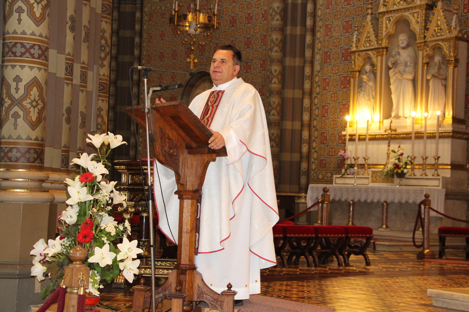 U homiliji se osvrnuo na život svetoga Barnabe za kojega je naglasio kako je on uzor svim suradnicima. Njegovo ime na hebrejskom može značiti: sin proroštva, sin utjehe i sin Neba. Pokazao je koje to kreposti mora imati jedan dobar suradnik. To su: poniznost (humilitas), hrabrost, odnosno odvažnost i vjernost/odanost. Barnabinu poniznost vidimo u tome što je potpuno umanjio sebe i dao prednost Pavlu. Tako je on znao prepoznati onoga koga je Bog poslao. Hrabrost je očita jer je bio svjestan da je Pavao bio veliki progonitelj kršćana i on nije mogao biti potpuno siguran da se Pavao zaista obratio. Kako nikada nije napuštao Pavla, uvijek je bio uz njega, vidimo da mu je bio vjeran i odan. Dekan je zatim naglasio kako ćemo svi mi kao budući teolozi biti suradnici Božji i da ćemo surađivati međusobno pa neka nam Barnaba bude uzor u tome suradništvu. Nakon toga, dekan se osvrnuo na današnje evanđelje. Usmjerio je sve prisutne na poruku kako nije svima dano jednako, ali onima kojima je dano više, više će se od njih i očekivati i tražiti. Također, upozorio je da je najgore što možemo napraviti – zakopati talente. Važno je da razvijamo talente svojim radom i upornošću jer na taj način se ostvarujemo.