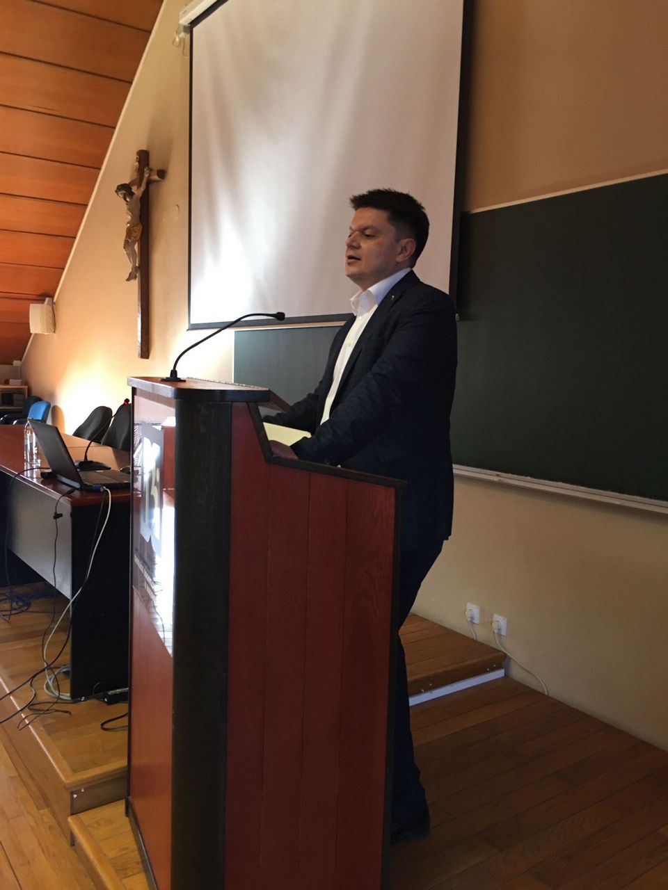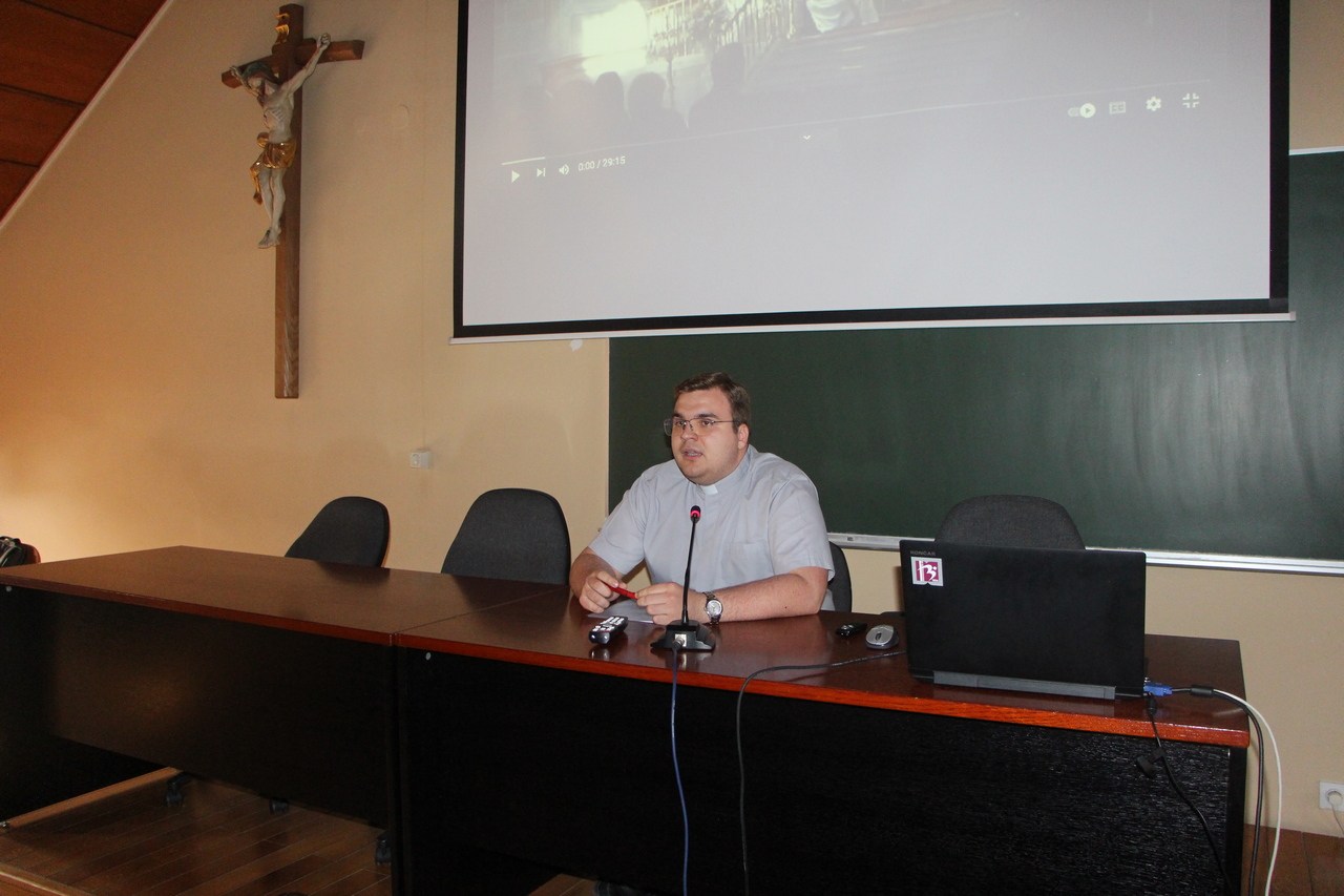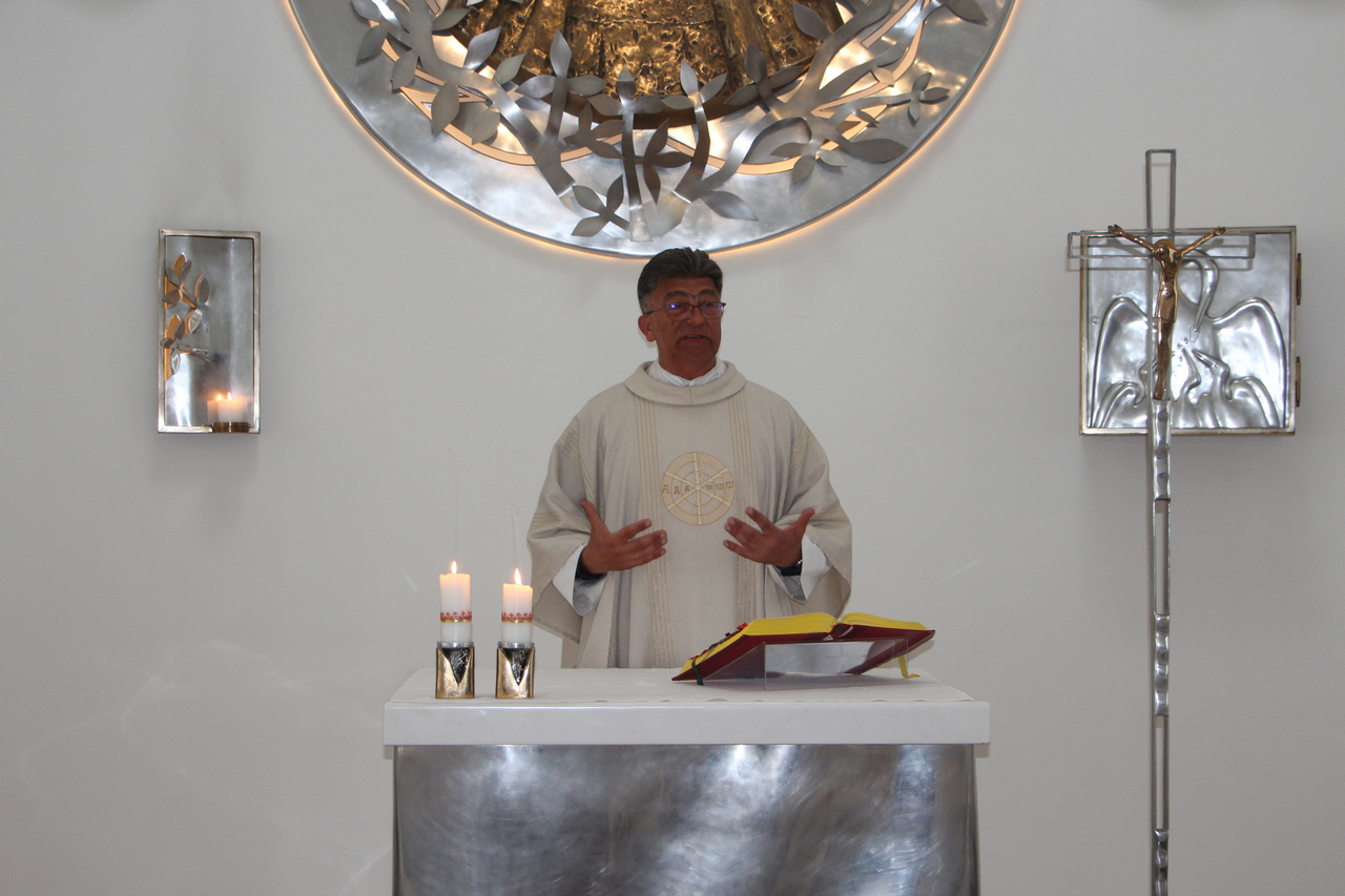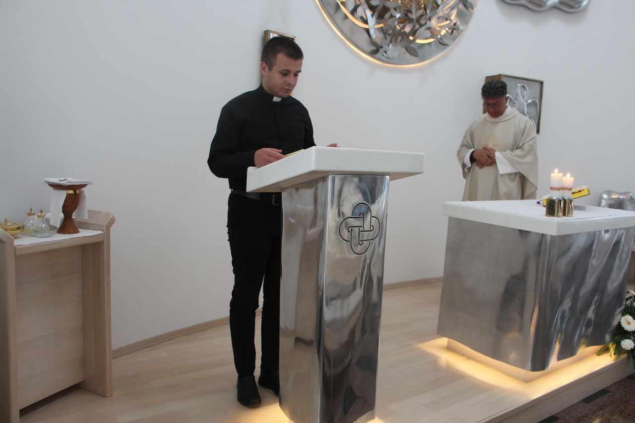 Nakon radionice, uslijedila je sveta misa koju je slavio izv. prof. dr. sc. Ivica Pažin, v.d. dekana Fakulteta. U svojoj je homiliji dekan naglasio rečenicu iz Ivanovog evanđelja kojom možemo opisati čitavo čovječanstvo: Bog je tako ljubio svijet te je dao svoga Sina Jedinorođenca da nijedan koji u njega vjeruje ne propadne, nego da ima život vječni.  U toj rečenici naznačene su one vrijednosti koje, s jedne strane opisuju Boga, a s druge strane nas. Istaknuo je pojmove ljubavi i vjere, te da na definiciju Boga kao ljubavi ne možemo odgovoriti samo racionalnom spoznajom, nego onim što je duboko u nama i što budi u nama očaravanje. Ljubav je prožeta i satkana u onom što bismo kao odgovor trebali Bogu ponuditi, a to je naša osobna vjera. Vjera je, s jedne strane naš štit, a s druge strane i naša dimenzija ljubavi kojom možemo izreći naše vlastito ophođenje prema Njemu.