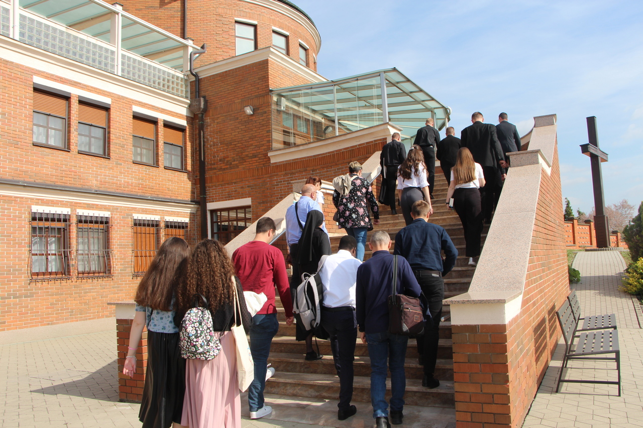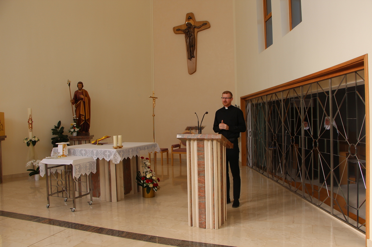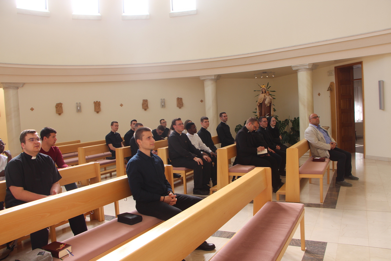 Vrhunac tjedna bio je posjet karmelu svetoga Josipa u Breznici. Na početku je sve prisutne pozdravio profesor Matezović i zahvalio sestrama na susretu. Uslijedilo je svjedočanstvo dviju sestara nakon čega su studenti imali mogućnost postavljanja pitanja i razgovora sa sestrama. Potom je uslijedila zajednička molitva Večernje i sveta misa koju je slavio profesor Matezović u koncelebraciji sa izv. prof. dr. sc. Davorom Vukovićem, v.d. prodekana Fakulteta. U svojoj se homiliji profesor Matezović osvrnuo na izričaj da Otac ljubi Sina i sve je predao u ruku njegovu. Pitajmo se što je ljubav za svakoga od nas. Je li ona samo osjećaj, emocija, nagon? Svjetovno će razumijevanje reći samo to – to je neka trenutna emocija koja dođe i prođe. Tako je ljubav iz ljudske perspektive uvijek okrenuta nama samima i dovodi do toga da volimo osobu na način posjedovanja te osobe. Ljubav iz božanske perspektive, s druge strane, biva drugačija. Otac ljubi Sina tako da daje Sinu sve, cijelu njegovu bit, cijelo njegovo božansko „Ja“. Otac daje sve, a Sin prima sve što Otac jest. U ovim uskrsnim danima, prepoznali smo u Isusu Kristu Boga koji nam iskazuje ljubav tako što nam daruje čitava sebe i sve što ima. Božanska je ljubav tako uvijek darivanje cijeloga sebe drugome. Time što Otac sve daruje Sinu, ne znači da je On ostao bez svega. Narav Božje ljubavi je takva da ona nikada ne prestaje i što se više netko daje, to više ima te ljubavi. Otac nikad ne prestaje darivati, a Sin nikada ne prestaje primati. Sin daruje Duha potpuno onima koji su pozvani širiti ljubav ovim svijetom. Ako želimo u ovome svijetu nasljedovati Krista, moramo darivati svima cijele sebe, ništa ne zadržavajući. Homiliju je profesor zaključio pozivom na molitvu za dar božanske ljubavi na ovome svijetu.