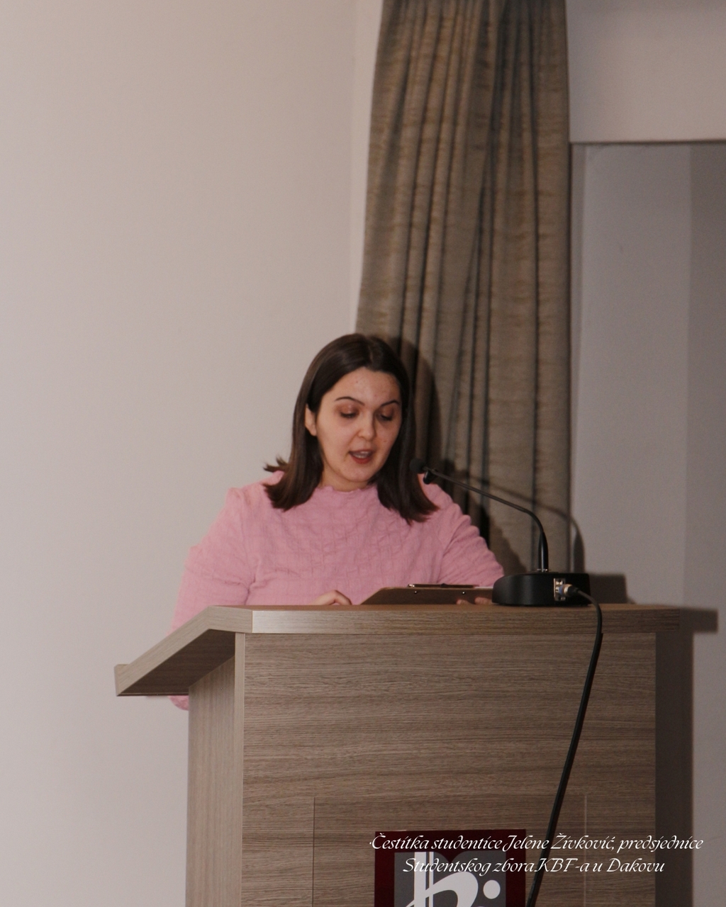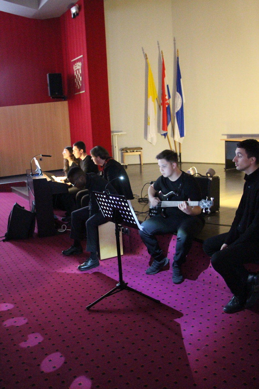 Uslijedila je uskrsna čestitka predsjednice Studentskog zbora Jelene Živković, koja je u svom govoru istaknula središnje otajstvo kršćanske vjere – muku, smrt i uskrsnuće Isusa Krista. Naglasila je veličinu Božje ljubavi koja se očituje u Kristovoj žrtvi, ali i u svakodnevnim patnjama i izazovima suvremenog čovjeka.