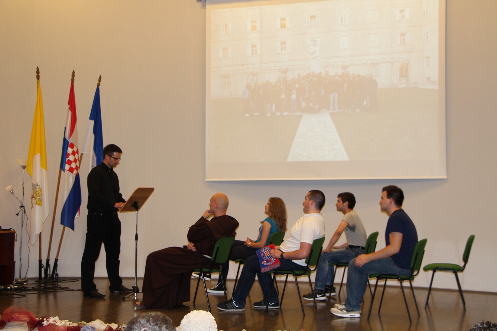 Program je započeo scenskim prikazom stvaranja čovjeka koji su upriličili Marija Lasić, Tihomir Borić, Stjepan Matezović i Filip Sertić. Nakon njih je nastupio đakon Krešimir Šaf sa skečom „Isus je zakon“ u kojem je prikazao suvremeni problem zaborava Boga. Studentski zbor „Ruah“ otpjevao je pjesmu „Slijedi put“, a student Mario Žunić je pokazao umijeće imitacije. Nakon prvog dijela programa, uslijedila je dodjela zahvalnica Studentskog zbora i uprave fakulteta. U kategoriji studenata nagradu Studentskog zbora za izvannastavne aktivnosti i zauzetost na fakultetu, dobili su: Tea Reponj, Ivan Lovrić, Josip Matezović, Anita Lučić i Marija Lasić. U kategoriji profesora nagrađeni su: doc. dr. sc. Suzana Vuletić, prodekanica za studente i nastavu, za nesebično zalaganje i posvećenost studentima; dr. sc. Boris Vulić, za mentorstvo pete godine; doc. dr. sc. Miljenko Aničić kao profesor koji odlazi u mirovinu. U kategoriji djelatnika nagradu je dobio gosp. Vladimir Tolušić.