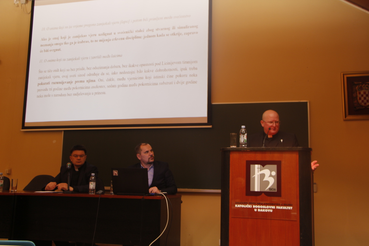 U utorak, 18. ožujka 2025. godine, u dvorani biskupa J. J. Strossmayera Katoličkog bogoslovnog fakulteta u Đakovu održan je znanstveni kolokvij povodom 1700. obljetnice Prvog nicejskog sabora. Kolokvij je okupio renomirane znanstvenike i teologe, koji su kroz stručna izlaganja rasvijetlili ključne teološke, povijesne i pravne dimenzije Nicejskog sabora. Skup je započeo uvodnim govorom i pozdravima dekana Katoličkog bogoslovnog fakulteta, izv. prof. dr. sc. Ivice Pažina, koji je sudionicima izrazio dobrodošlicu i istaknuo značaj ove obljetnice za teološku i crkvenu zajednicu. Moderiranje skupa preuzeo je dr. sc. Ivan Zubac.
