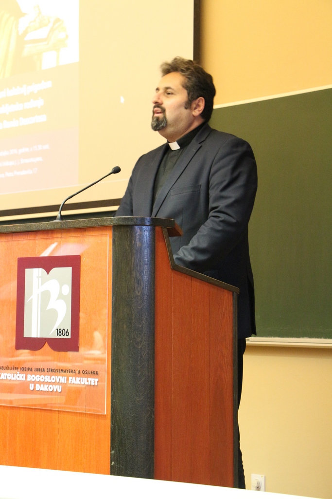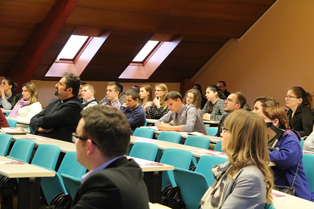 “Descartesova misao o Božjem postojanju” bio je naslov prvog predavanja koje je održao prof. dr. sc. Ivan Tadić. Descartesa je predstavio kao filozofa sumnje, ali nikako skeptika. Glavni cilj mu je bio doći do sigurnosti, a jedna od takvih je glasovita misao: “Mislim, dakle jesam!” Kroz sumnju, čovjek si priznaje ograničenosti i samo na takav način dolazi do spoznaje Boga, isticao je u svojoj filozofiji Descartes. Profesor Tadić je u svom izlaganju stavio naglasak na tri dokaza o Božjem opstojanju, koje Descartes iznosi u svom djelu “Meditacije o prvoj filozofiji”. U prvom dokazu usmjerava se prema urođenosti ideje o Bogu. Za Boga kazuje da je beskonačna i razumna supstancija koja je stvorila sve što postoji. U svom drugom dokazu postavlja pitanje: Ako Bog ne postoji, odakle ja? Descartes se poziva na načelo uzročnosti i zaključuje da je u gradaciji uzroka nemoguće ići u beskonačno, već treba stati u Savršenom, tj. Bogu. I posljednji dokaz je taj u kojemu Descartes izjednačuje ideju Boga s idejom trokuta. Iako trokut ne postoji, njegovu bit poznajemo, a upravo to možemo reflektirati na ideju Boga. Ideja Boga je tako urođena, ona je prva među svim idejama, a reći da Bog ne postoji, znači savršenome oduzeti savršeno. “Bog o kojemu je Descartes govorio nije nametljivi Bog, on je onaj koji nas je uznemirio, a to predstavlja izazov za um, te draž za vjeru.” , zaključuje profesor Tadić.